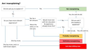 So when I saw the awesome tweet featuring an “Am I mansplaining” flowchart from Kim Goodwin I felt like I understood this a bit better.